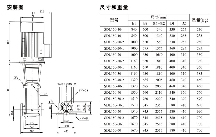 南元SDL150/SDLT150立式多級離心泵有不同的泵規(guī)格和不同級數(shù),以滿足所需的流量和壓力。