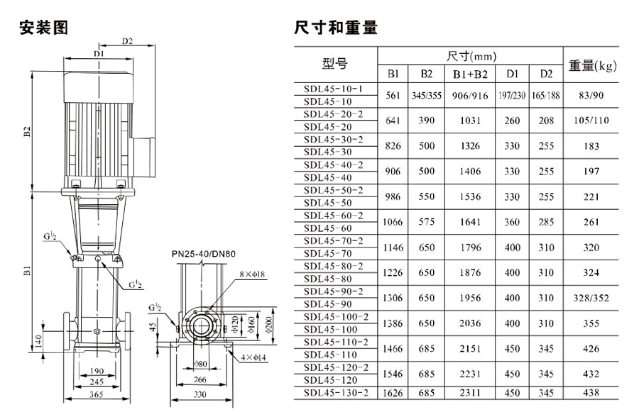 南元SDL45/SDLT45立式多級離心泵有不同的泵規(guī)格和不同級數(shù),以滿足所需的流量和壓力。