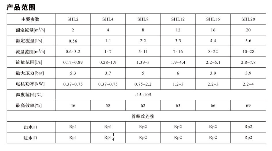 SHL/SHF/SHFT8為臥式多級非自吸多級離心泵,配加長軸電機。緊湊式結構使泵尺寸很小,軸向入口或徑向出口。