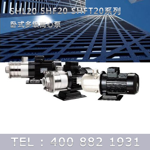 SHL/SHF/SHFT20為臥式多級(jí)非自吸多級(jí)離心泵,配加長(zhǎng)軸電機(jī)。緊湊式結(jié)構(gòu)使泵尺寸很小,軸向入口或徑向出口。